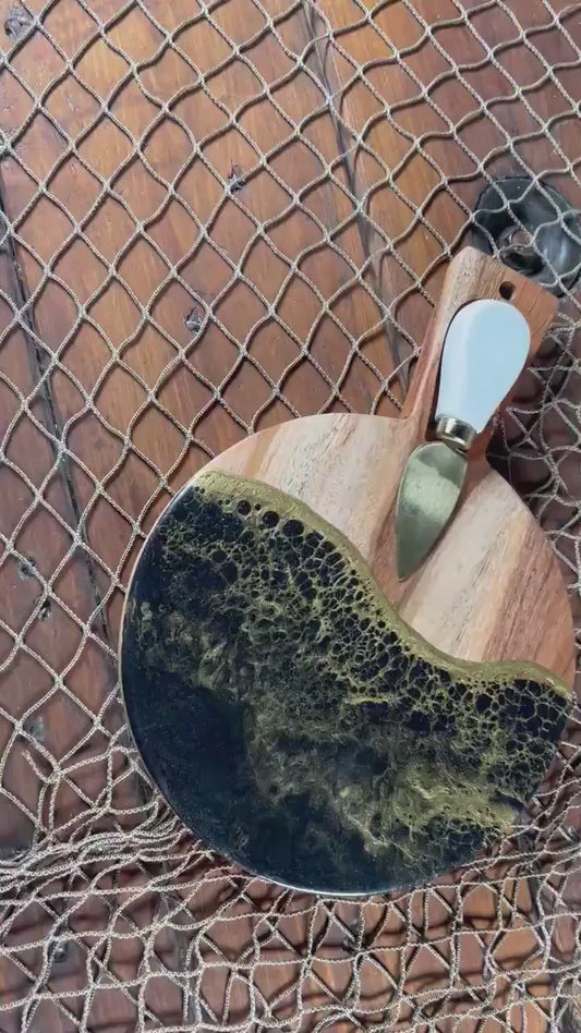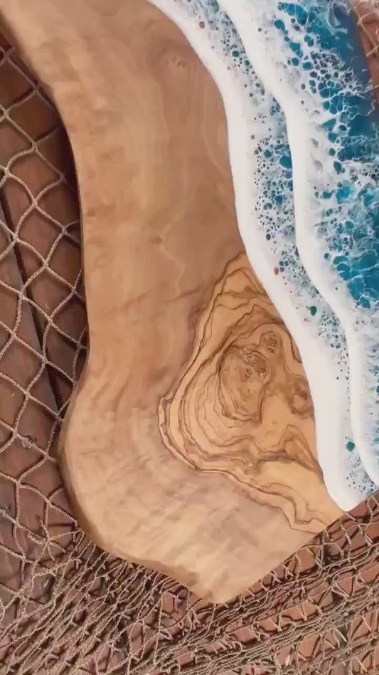 Olive Wood with Turqoise and Blue Epoxy Resin Charcuterie Board, serving board