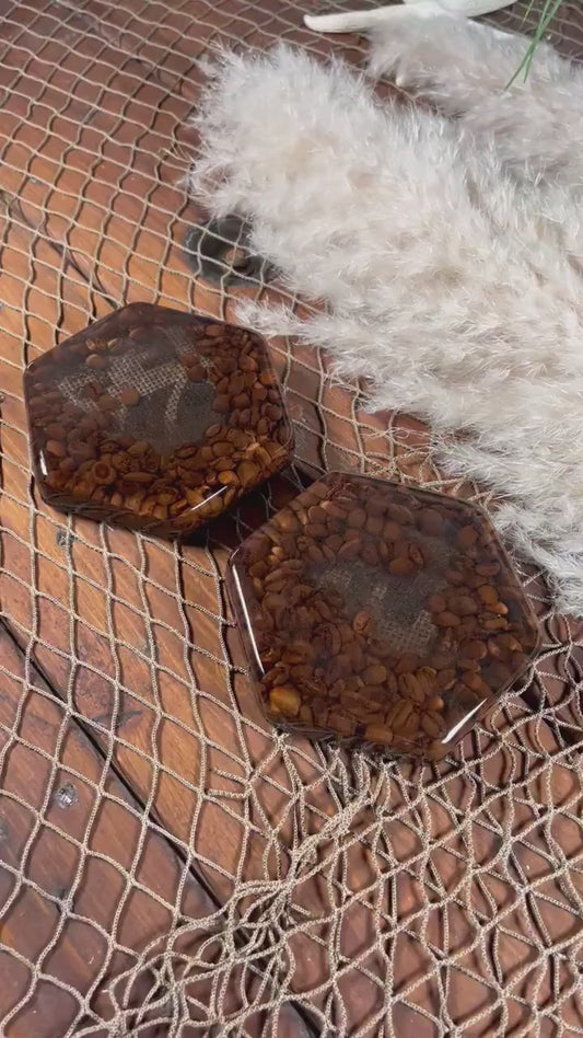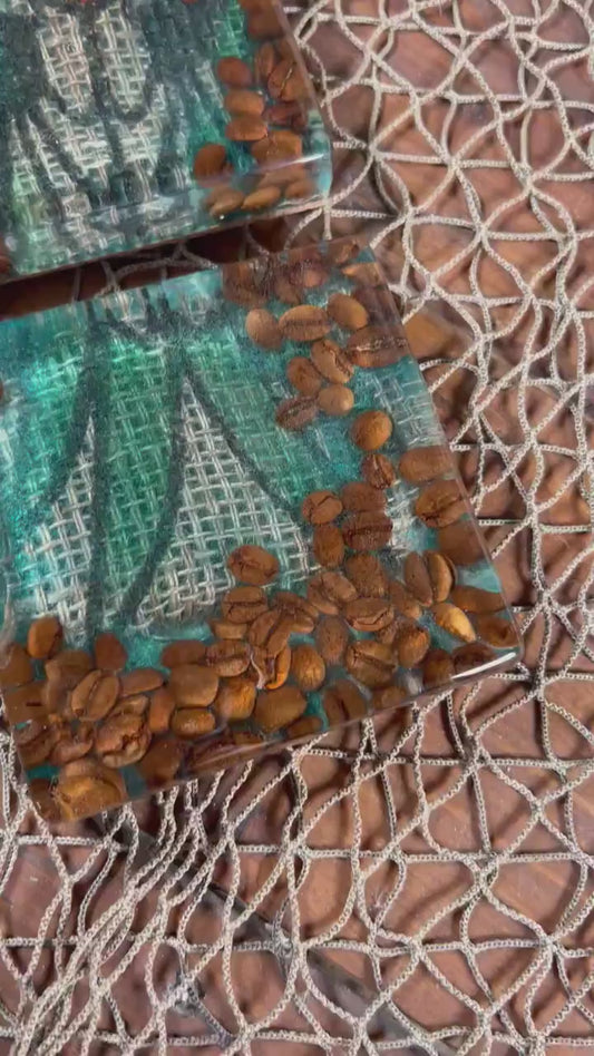Aqua Blue/Green Resin and Olive Wood Coasters